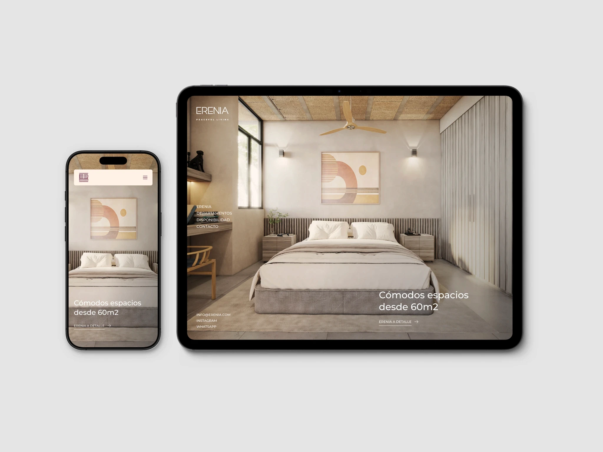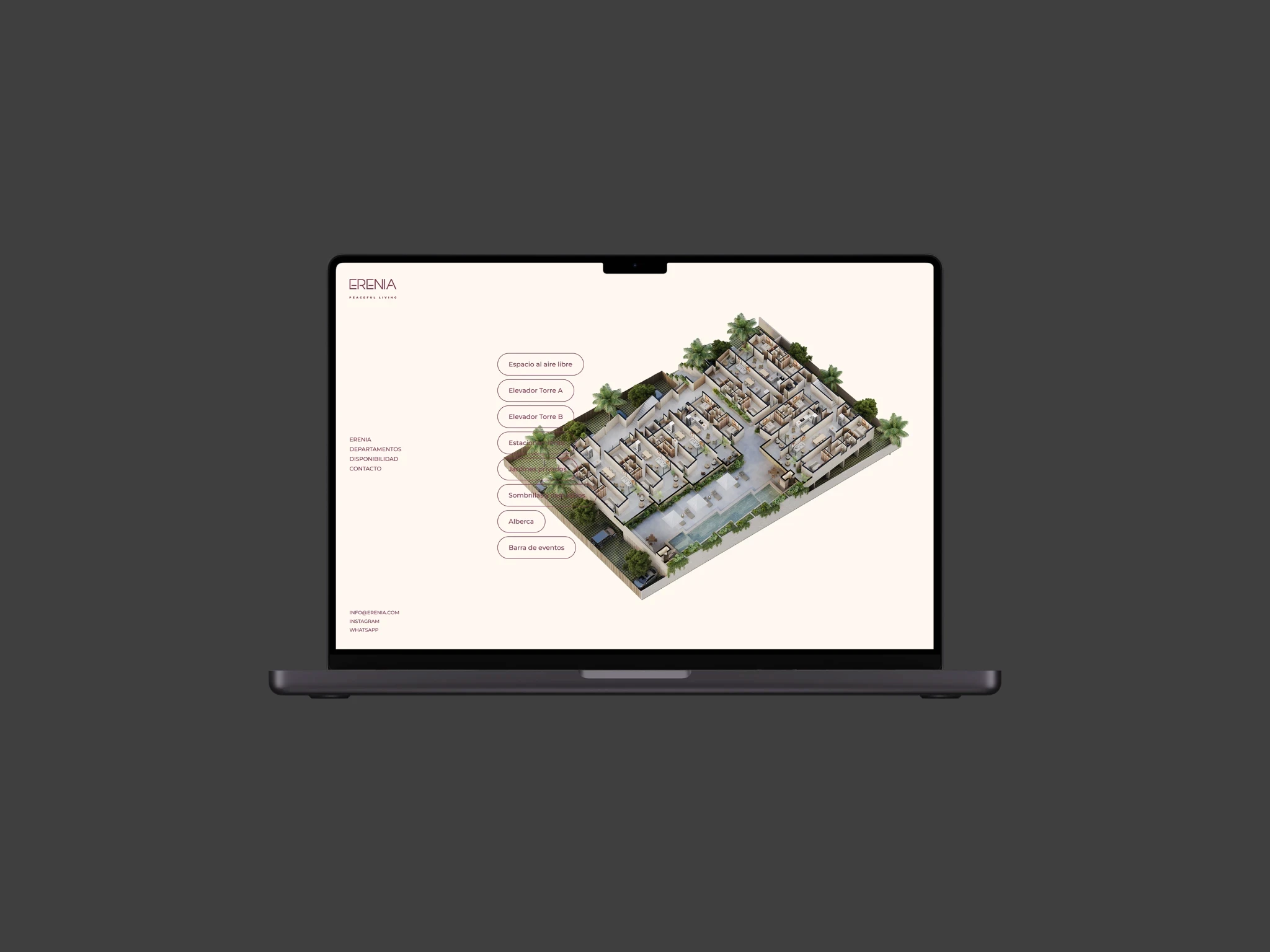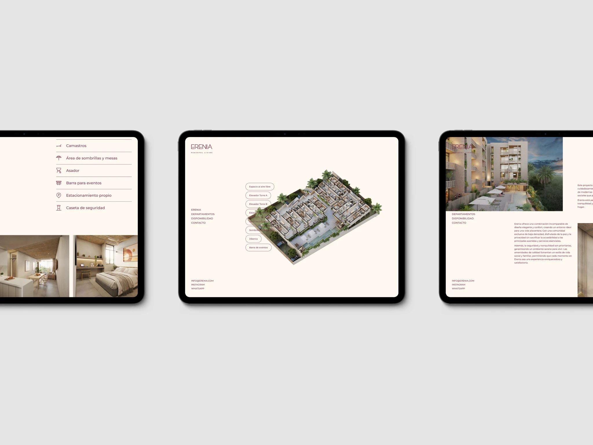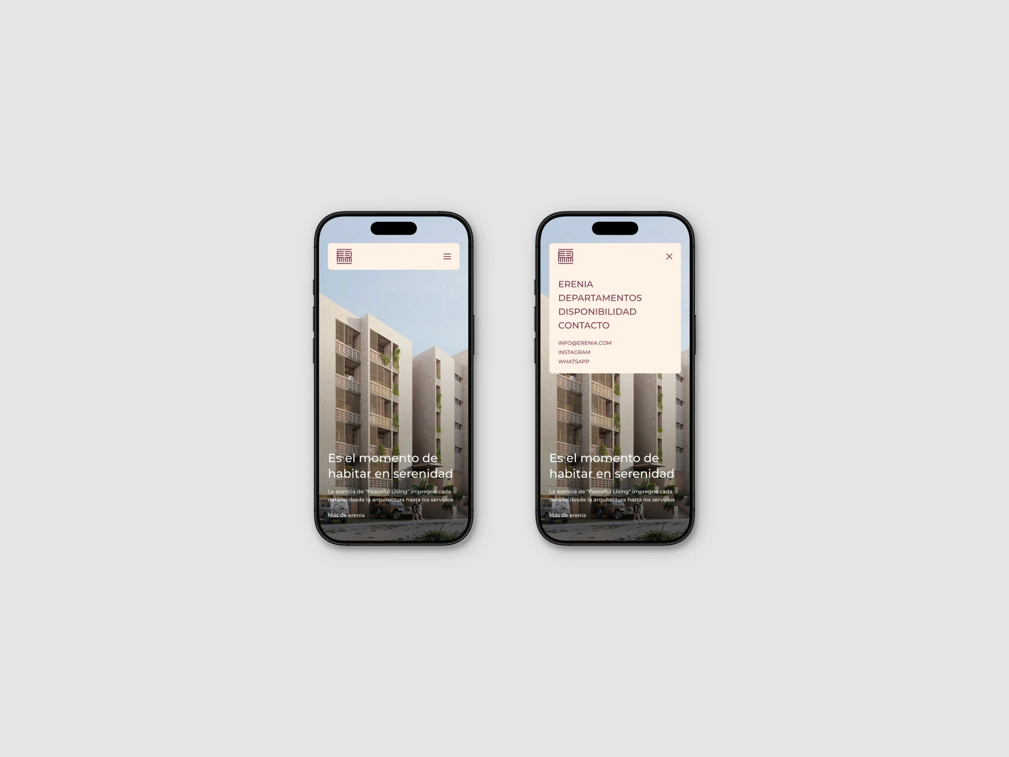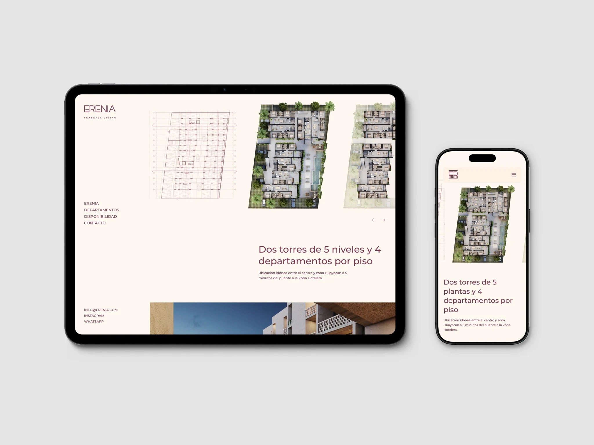 Erenia Peaceful Living es un desarrollo inmobiliario con una narrativa aspiracional, con enfoque claro en estilo de vida. Desde el inicio, el proyecto contaba con un brochure diseñado por Estudio Manila, que definía tanto la estructura del contenido como el lenguaje visual.